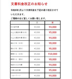 昨今の諸経費の値上がりに伴い、2026年1月からのご依頼分より診断書(文書)等の料金を改定させていただきます。